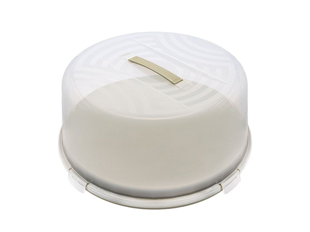 Velmi šikovný a prostorný box na dorty. Má velmi pohodlné madlo, elegantní barevné dno a snadno se zavírá. Výrobek je užitečný při přepravě a skladování. Vyrobeno z nejkvalitnějšího materiálu. Rozměry Ø 334x156 mm.