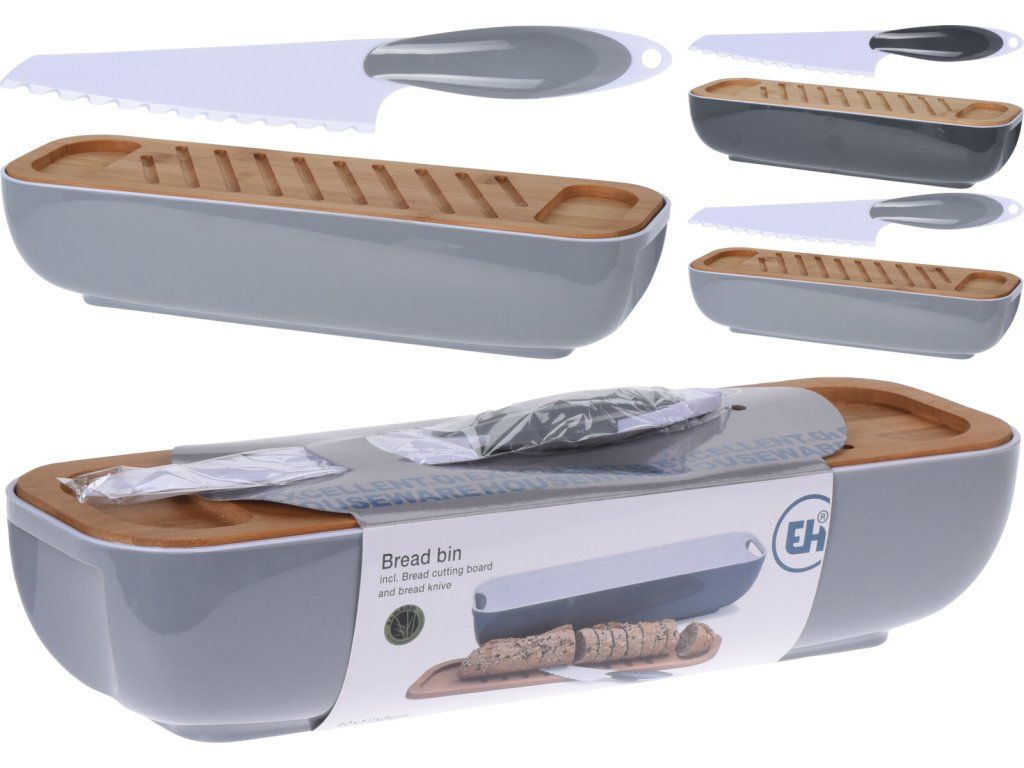 Box na pečivo s prkýnkem a krájecím nožem