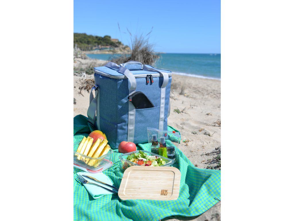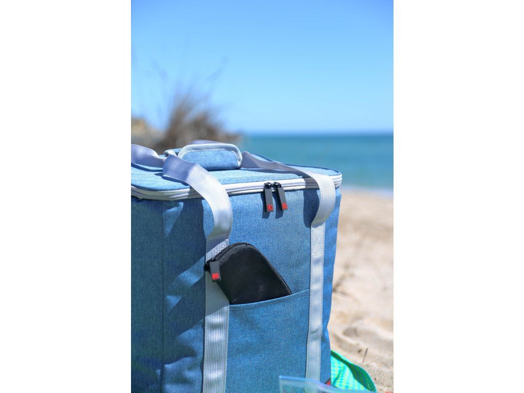 Chladicí taška s extra silnou izolací , která udržuje chlad až 12 hodin za použití chladicích prvků. Tepelně utěsněná vnitřní část, která zabraňuje tekutinám a kondenzaci/vodě prosakovat přes švy. Tkanina použitá ve vnitřní části je FOOD SAFE, což znamená, že je bezpečná pro přepravu a skladování potravin. Má vnější kapsu a dvojité zesílené rukojeti. Nastavitelný ramenní popruh a široký a pohodlný přístup do tašky díky dvojitému zipu.