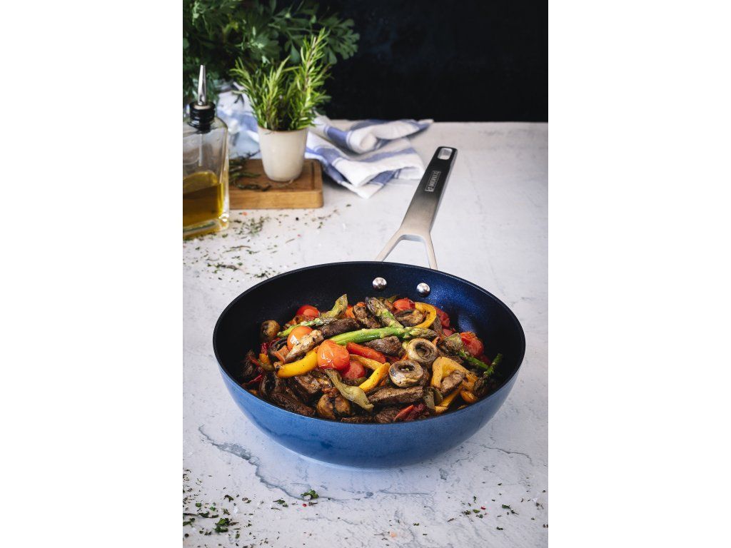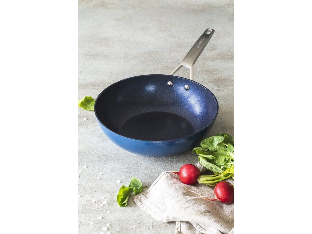 Velmi kvalitní vnitřní povrch je složen ze tří vrstev nepřilnavého, minerály obohaceného povrchu Quantanium, který obsahuje i částice titanu a tím zajišťuje jeho tvrdost a odolnost. Je možné použít je i v troubě pro dopékaní pokrmů (bez pokličky). Nádobí je vhodné pro všechny typy sporáku včetně indukce. Wok pánev série Diamond o průměru 28 cm - celková délka s úchytem 48,6 cm, výška 8 cm. Je opatřena třívrstvým nepřilnavým, minerály obohaceným povrchem Quantanium, který obsahuje i částice titanu a tím zajišťuje její tvrdost a odolnost. Ergonomická rukojeť vyrobená z nejkvalitnější nerezové oceli pro dokonalé uchycení. Umožňuje vaření bez oleje nebo s velmi malým množstvím tuku pro přípravu zdravých pokrmů.