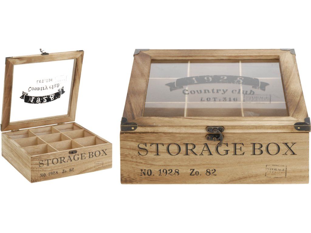 Díky čajové krabičce můžete své oblíbené čaje uschovat přehledně a návštěvě je nabízet se stylem a elegancí. Krabička je vyrobena z borovicového dřeva s atraktivním potiskem a má 9 přihrádek, takže je dostatečně prostorná, aby se do ní vlezly všechny Vaše oblíbené čajové sáčky. Krásný designový doplněk nebo perfektní dárek pro milovníky čaje. Rozměry 24x24x9 cm.