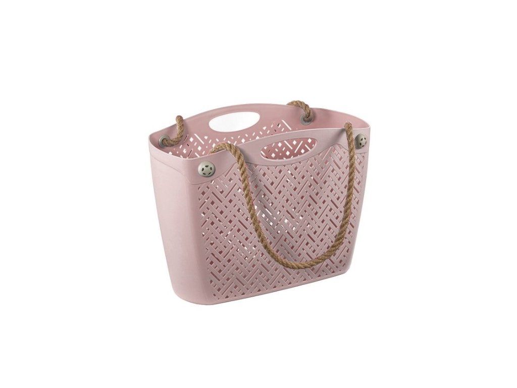 Elegantní plastovou tašku využijete na mnoho způsobů. Nákupy, pláž, piknik v přírodě, ke kočárku, pro ukládání ženských drobností-na to vše je tato taška s krásným, moderním designem ideální. |Je jednokomorová, vyrobena z pevného, pružného plastu, úchyty jsou z pevného lana. Objem 29 litrů, rozměry 44x33x21 cm. Barevné provedení - růžová, béžová