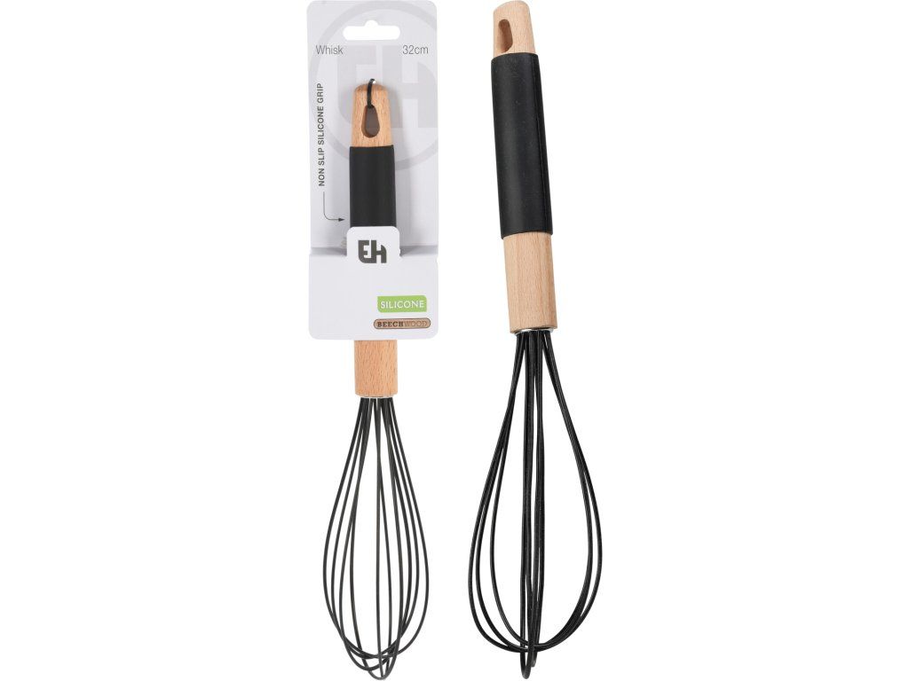 Kuchyňská metlička vyrobená z nerezové oceli s nepřilnavým silikonovým povlakem. Vybavena dřevěnou rukojetí s ergonomickou silikonovou rukojetí. Šikovná, praktická a estetická, ideální na šlehání. Délka 32 cm