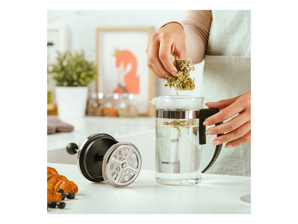 Kávovar je ideální pro přípravu vašeho oblíbeného nápoje. French press je vyroben ze skla odolného vůči vysokým teplotám, s ergonomickou rukojetí. Obsahuje píst a filtr z nerezové oceli 18/8.