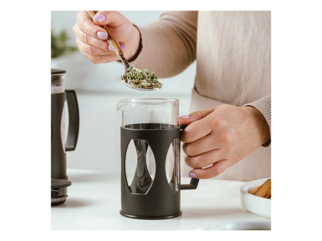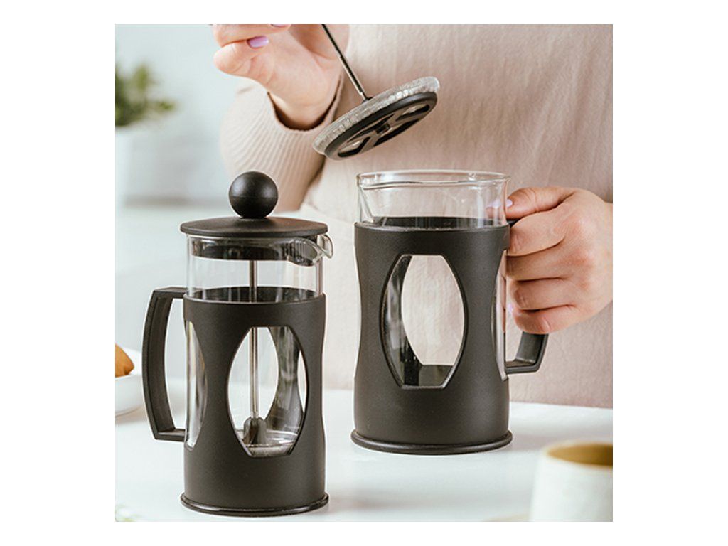 Kávovar je ideální pro přípravu vašeho oblíbeného nápoje. French press je vyroben ze skla odolného vůči vysokým teplotám, s ergonomickou rukojetí. Obsahuje píst a filtr z nerezové oceli 18/8.