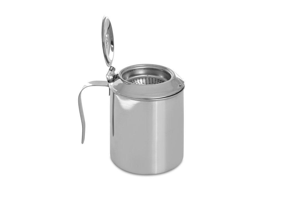 Odlučovač oleje IRIS je vyroben z kvalitní leštěné nerezové oceli 18/8. Objem - 0,75 litru, výška 13 cm. Je vybaven ergonomickou rukojetí a praktickou výlevkou pro větší pohodlí při manipulaci. Umožňuje uchovávat olej v temnu bez přístupu slunečního záření. Je vybaven sítkem pro filtrování malých částic fritovacího oleje pro další pohodlné používání bez nečistot. Odklápěcí víčko zabraňuje usazování prachu a hmyzu a udržuje olej v čistotě.