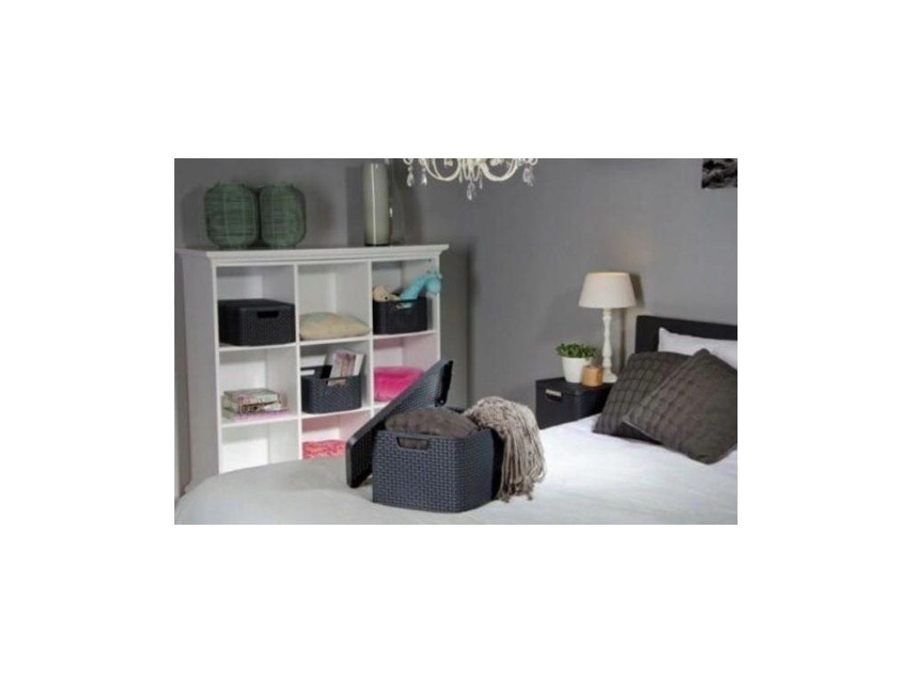 Plastový košík originálního vzhledu s motivem ratanu. Tyto koše se stanou ozdobou Vaší domácnosti. Konstrukce košů umožňuje jejich stohování jeden na druhého díky speciálně navrženým hranám po stranách. Košík je perfektním řešením pro udržení pořádku v kuchyni, koupelně, dětském pokoji. Praktické úchyty a víko. Rozměry: 28,8 cm x 19,7cm x 16,2 cm. Barevné provedení - antracit.
