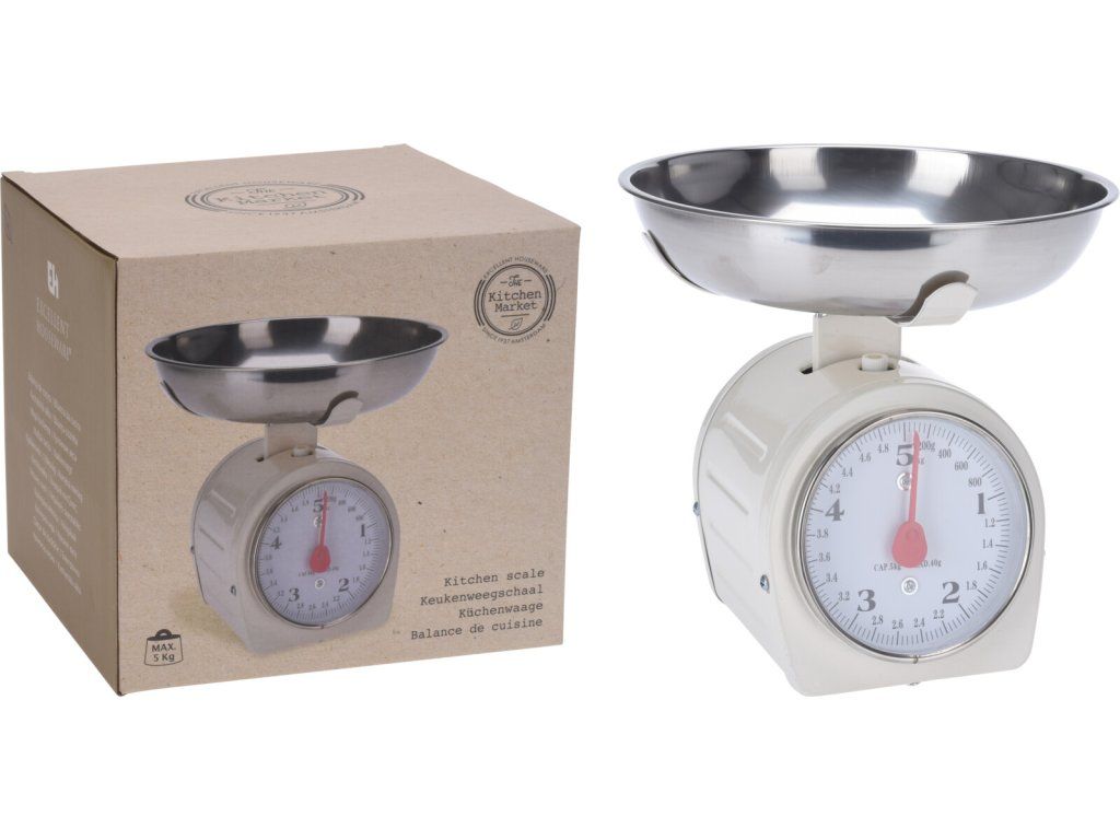 Tato mechanická váha v retro stylu vám umožňuje přesně měřit váhu. To vám umožní rychle a přesně měřit správné množství mouky, cukru, mléka a dalších pevných látek.