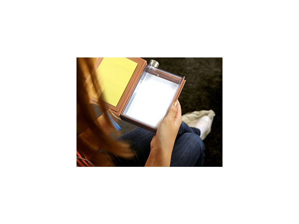 Lahev je ozdobena vtipnými i motivačními nápisy, díky které vypadá z dáli spíše jako kniha.