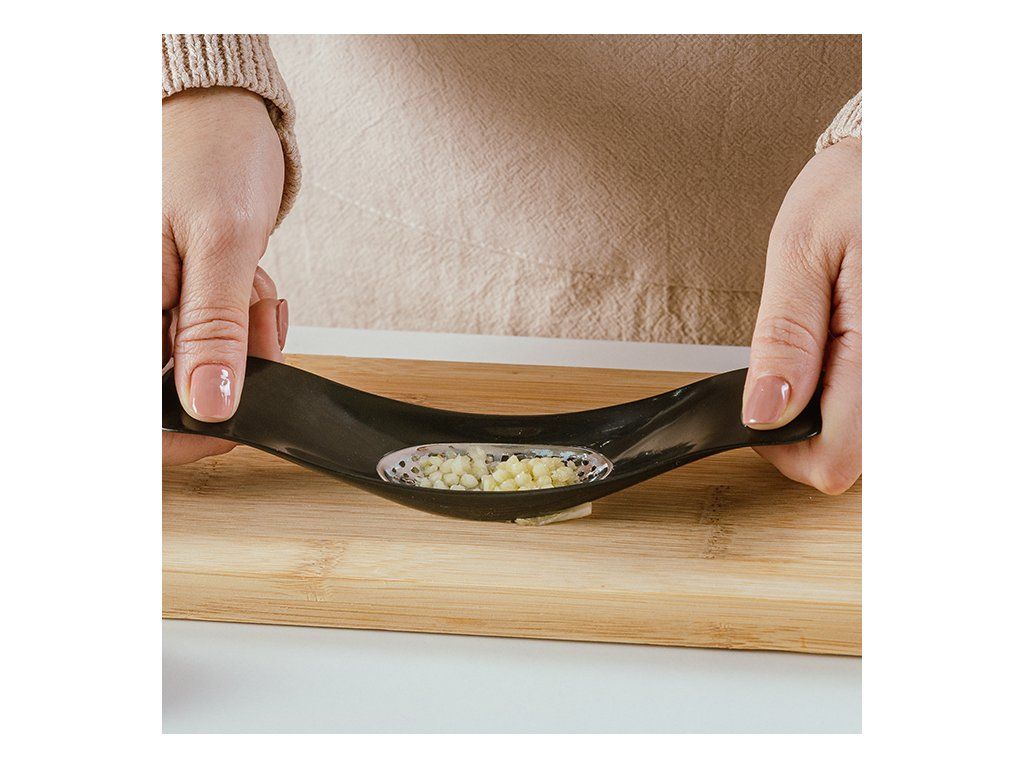 Rychlost a efektivita: Díky ergonomickému kolébkovému tvaru stačí přes stroužek česneku nebo kousek zázvoru jednoduše přejet. Během vteřiny získáte jemnou dužinu.