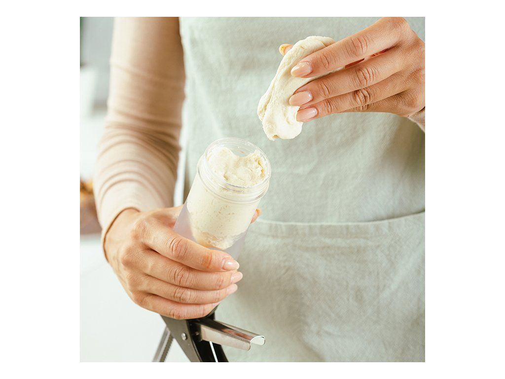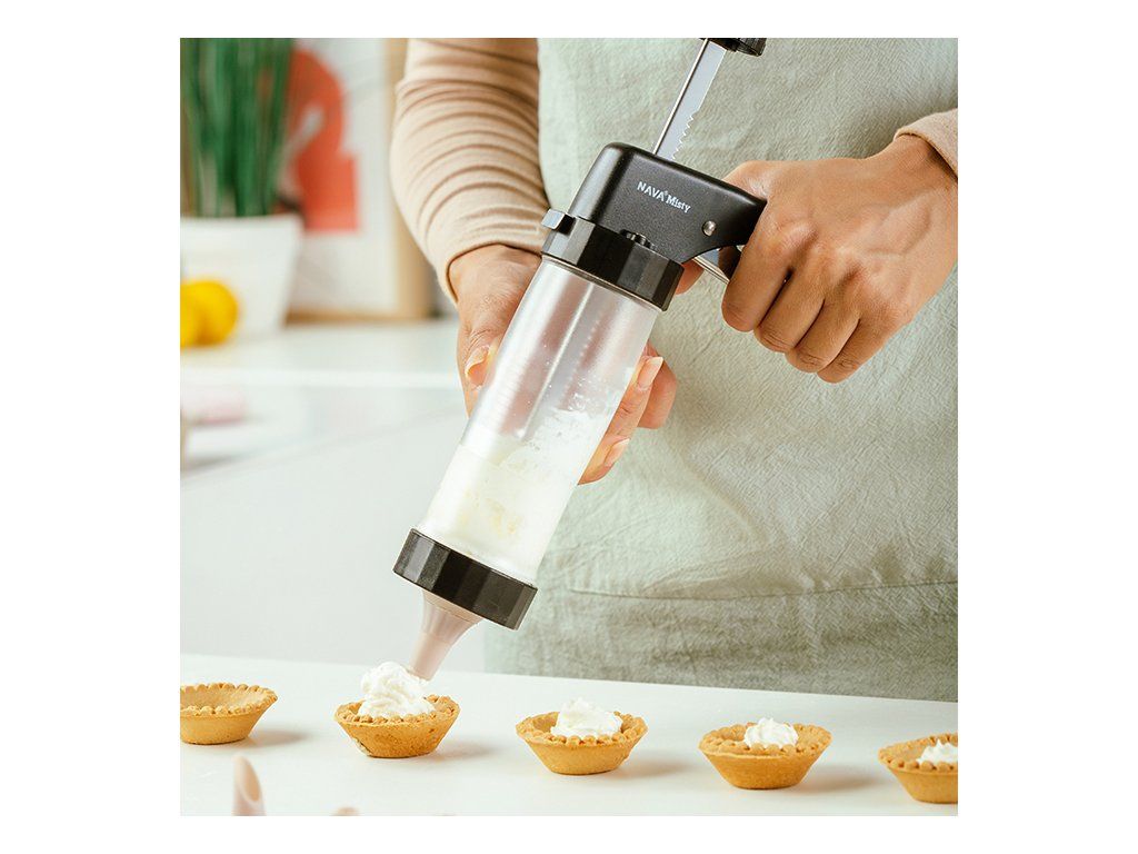 S ergonomickým designem pro pohodlné uchopení , vyrobený z odolného vysoce kvalitního plastu, vhodný pro potraviny a vysoce odolný vůči teplotě, s odolností do 100C. S průhledným tělem vám umožní vidět přesné množství těsta, které zbylo ve formovači cukroví.