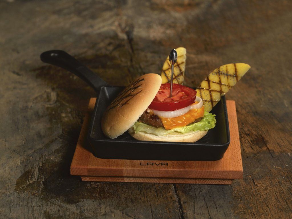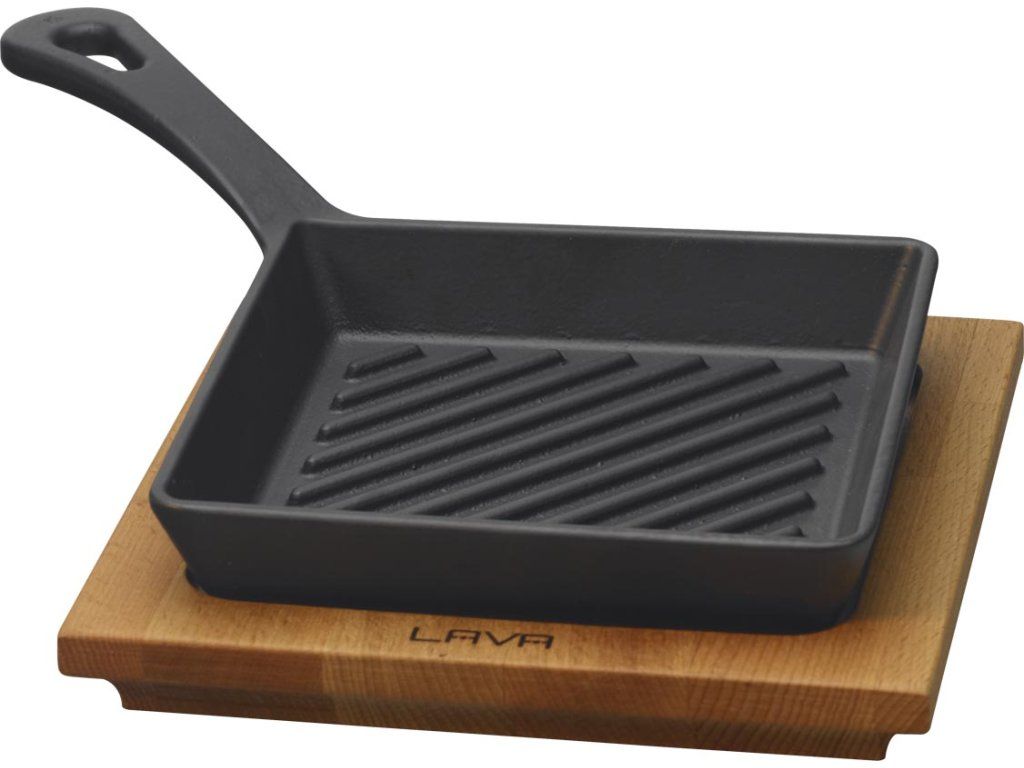 Litinová grilovací pánev 16x16cm s dřevěným podstavcem