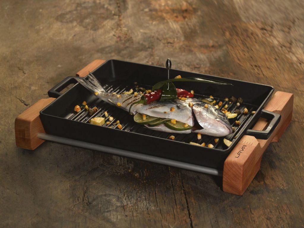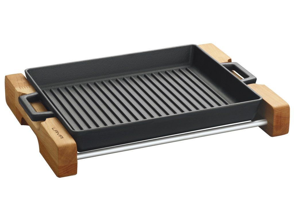 Litinová grilovací plotýnka 26x32cm s dřevěným podstavcem
