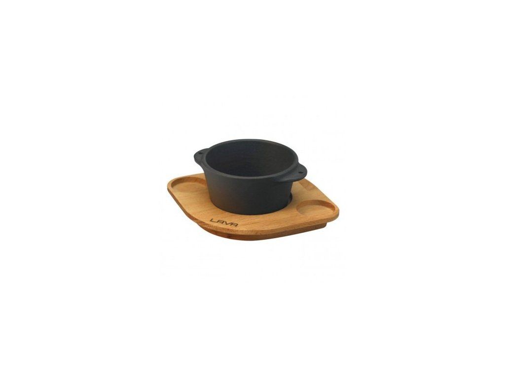 Litinová miska na souffle 8 cm s dřevěným podstavcem