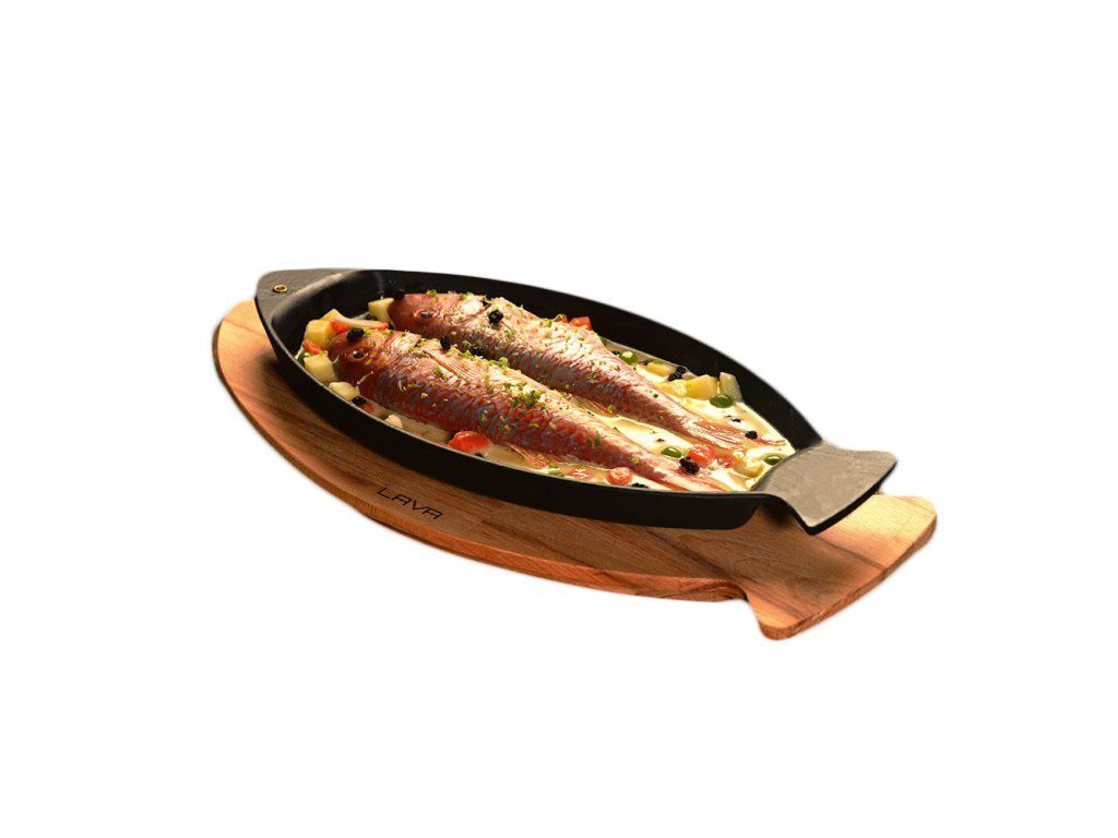 Univerzální pomocník pro Vaše grilování, smažení i pečení. Lze použít venku na všechny typy grilů, ale i doma na sporáku nebo v troubě. Má multifunkční využití, můžete na ní připravit pokrmy podle vlastní fantazie. Díky svému tvaru rybky se plotýnka stane ozdobou Vaší kuchyně. Litina se rovnoměrně prohřívá po celé ploše, dobře akumuluje teplo a zelenina, ryby i steaky se propečou přesně podle Vašich potřeb. Poté plotýnku jednoduše stáhněte z ohně a klidně i s jídlem stylově servírujte na stůl na praktickém dřevěném podstavci.