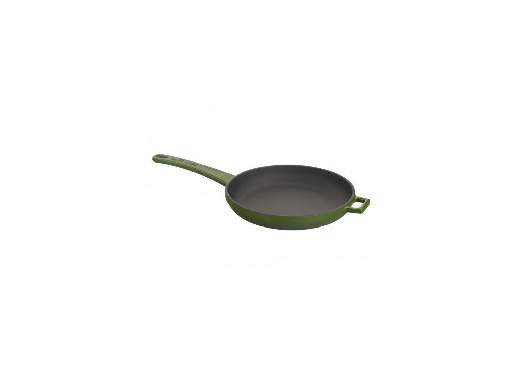 - Elegantní zelená litinová pánev je ideální doplněk k plynovým, elektrickým grilům, ale i ke grilům na dřevěné uhlí. Ploché dno umožňuje použití také na sklokeramických, indukčních, elektrických ale i plynových sporácích. Litinová pánev se vyznačuje robustní konstrukcí a vynikajícími tepelnými vlastnostmi. Jedná se o produkt s nepřilnavým povrchem. Má široké možnosti využití, je skvělá pro přípravu příloh a omáček, ale i pro smažení při vysokých teplotách. Můžete na ní také připravovat vajíčka, lívance nebo palačinky, popřípadě zapéct pokrmy v troubě. Průměr 16 cm, výška 3 cm.