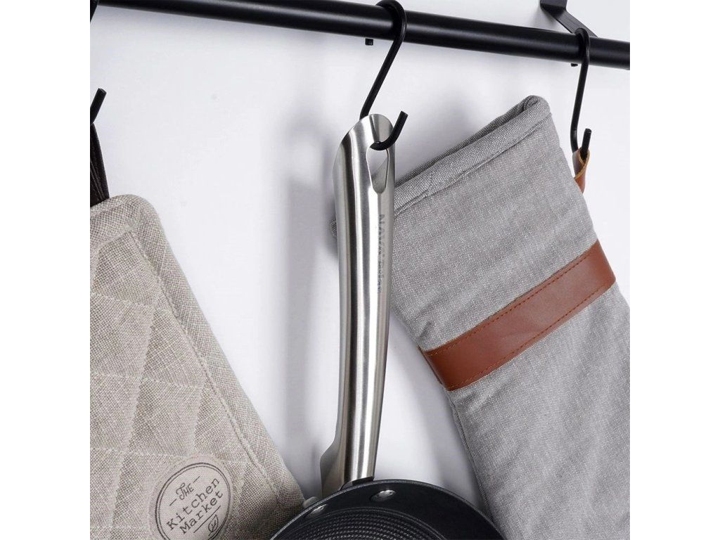 - Nerezová dominance: Rukojeť z nerezové oceli je nejen elegantní, ale i prakticky nezničitelná. Umožňuje bezpečné zapékání v troubě i při extrémních teplotách.