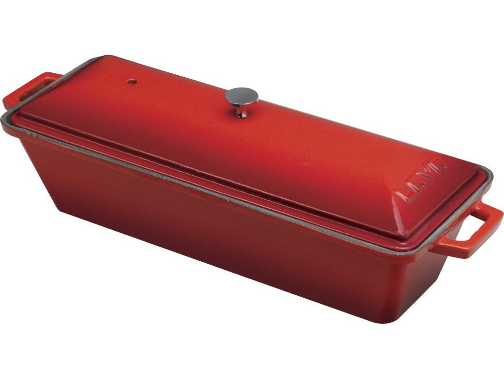 Teriny Lava metal jsou vyrobeny z masivní smaltované litiny s nepřilnavým povrchem. Jsou vhodné pro použití v troubě, připravit v nich můžete buchty nebo pomalu péct maso, skvělé jsou na přípravu domácí paštiky nebo krásně voňavého chleba. Jednoduše multifunkční pomocník. Díky praktickému tvaru a velikosti můžete terinu použít i pro přípravu sladkých dezertů. Ucha po stranách formy usnadňují manipulaci a servírování. Červená s barevně sladěnou poklicí, která je opatřena nerezovým úchytem, má vnitřní rozměry 11x29 cm. Celková délka s úchyty je 33 cm, výška s poklicí 10,8 cm. Mytí v myčce nedoporučujeme, po použití umyjte horkou mýdlovou vodou a otřete dosucha.