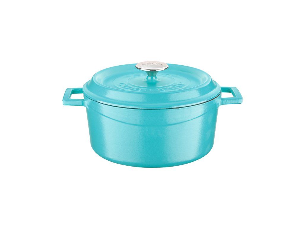 Litinové hrnce jsou robustní, vysoce odolné a mají dlouhou životnost - vydrží Vám i několik generací. Litinové nádobí je odolné proti korozi a připálení, skvěle vede a akumuluje teplo, a tudíž je vaření energeticky úsporné. Kulatý litinový hrnec je vysoce odolný vůči popraskání, oděru a vysokým teplotám. Průměr hrnce je 24 cm, výška 11,5 cm a objem 4,5 l. Hrnec je opatřen nepřilnavým povrchem a poklicí. Vhodný na všechny typy vařičů včetně indukce a do trouby. Díky svému svěžímu barevnému provedení bude ozdobou Vaší kuchyně. Mytí v myčce výrobce nedoporučuje – může snížit jas barev.
