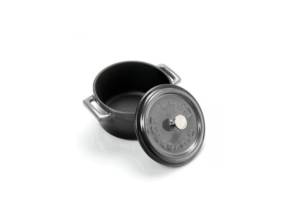 Litinový mini hrnec kulatý 10 cm - šedá majolika