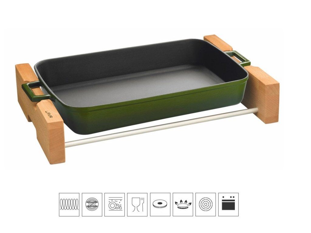 Litinový pekáč 22x30cm s dřevěným podstavcem - zelený
