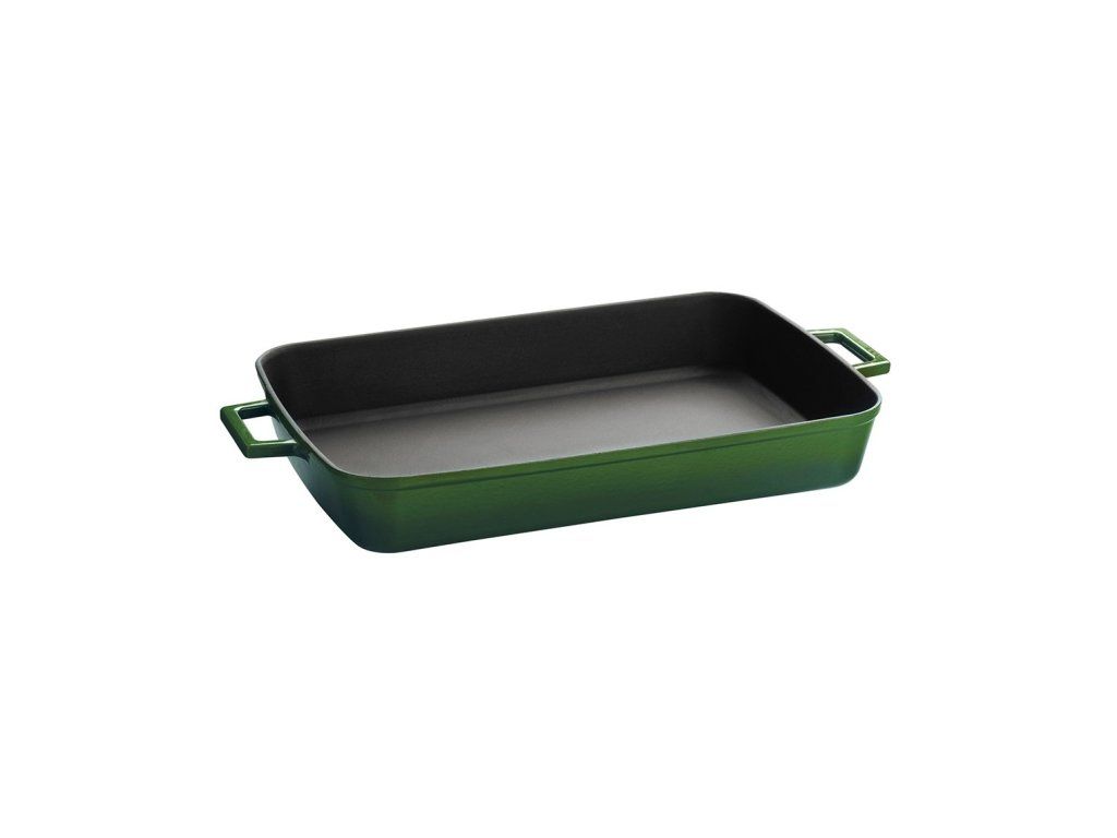 Obdélníkový litinový pekáč Lava o rozměrech 22x30 cm o objemu 2,5 l je vyroben ze kvalitní litiny, která má opravdu dlouhou životnost, perfektně vede teplo, je odolná proti korozi, poškrábání a odštípnutí a je stálobarevná. Pekáč můžete používat na všech typech vařičů včetně indukce, je ideální pro zapékání v troubě a svou sytě zelenou barvou upoutá na první pohled. Pekáč je ideální na pečení, vaření i smažení. Díky krásnému designu můžete navíc pokrmy v pekáči rovnou servírovat. Litinové nádobí je oblíbené mezi šéfkuchaři, protože skvěle drží teplo a je prakticky nerozbitné.