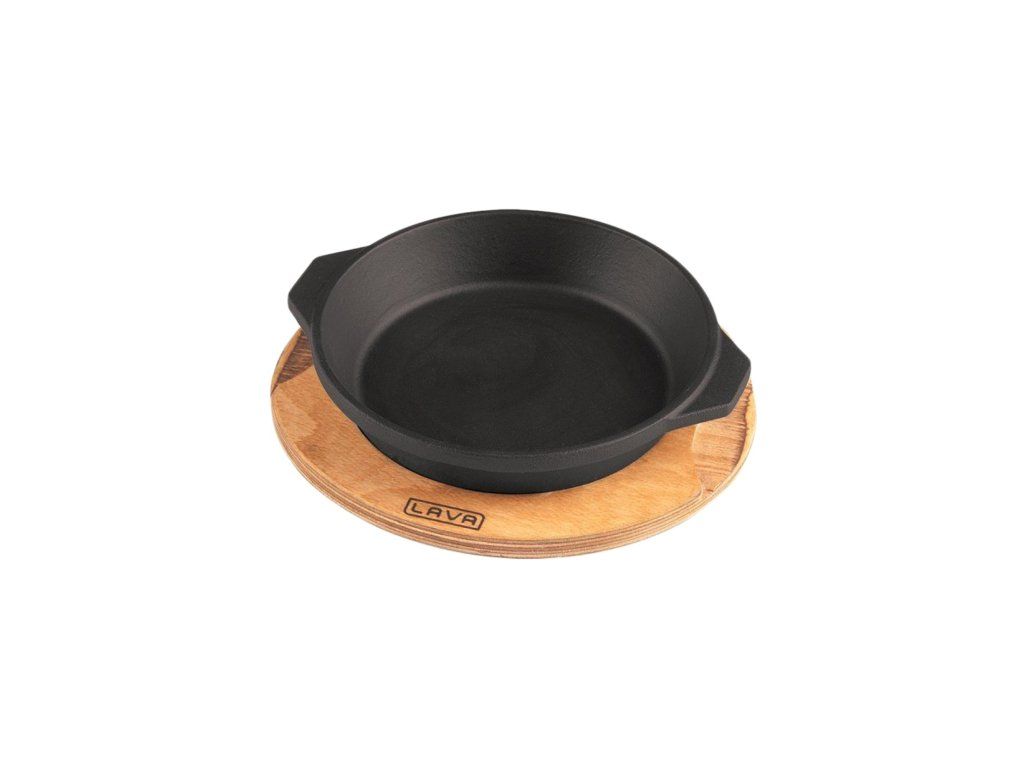 Litinový servírovací talíř/miska 16cm s dřevěným podstavcem