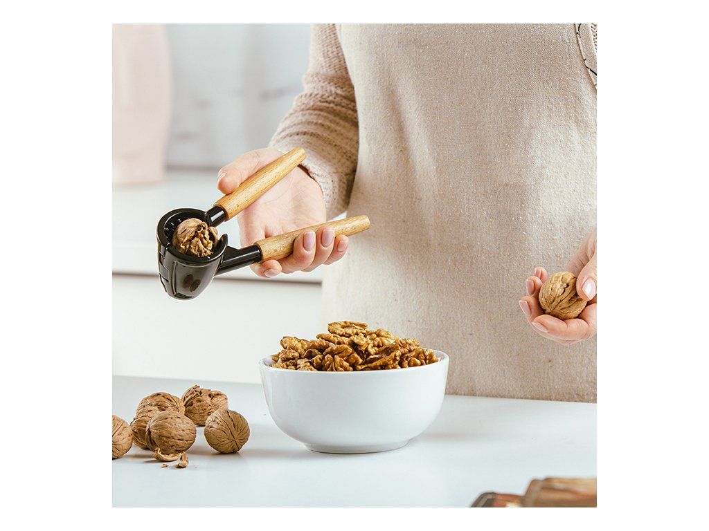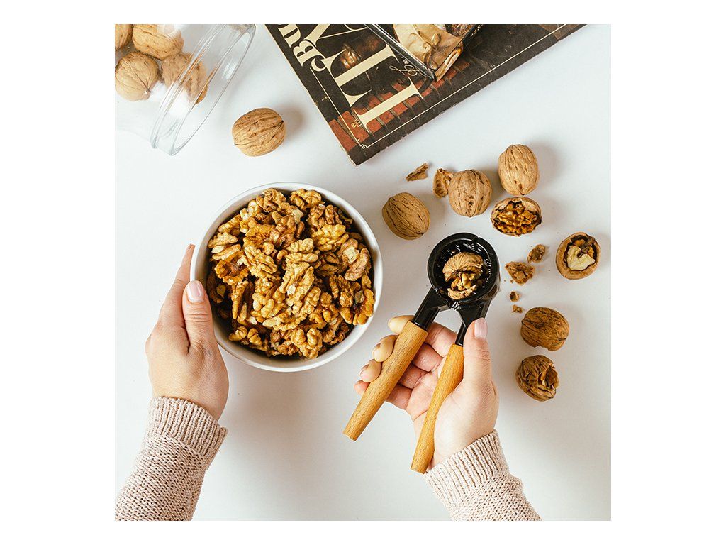 Pevná hliníková konstrukce s ergonomickými držadly z bukového dřeva, které umožňují pohodlnou a bezpečnou manipulaci. S pružinou, která usnadňuje drcení, šetří vám čas a námahu, a zářezy, které zabraňují sklouznutí ořechu bez ohledu na jeho velikost. Vhodné pro vlašské ořechy různých velikostí, ale i jiné ořechy s tvrdou skořápkou jako jsou mandle, lískové ořechy, pekanové ořechy .