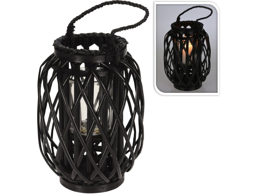 Romantické osvětlení venkovní terasy nebo zastřešené pergoly Vám zpříjemní letní chvíle. Kouzelné světlo svíčky v proutěné lucerně Vám dovolí na chvíli se zastavit, nechat čas jen tak plynout a relaxovat. Díky příjemnému světlu lucerny si budete moci chvíle relaxu užívat mnohem déle.Tato proutěná lucerna se bude vyjímat jak v interiéru domu, tak venku na terase, zahradě nebo před vstupními dveřmi domu.Uprostřed je skleněný válec na svíčku, díky kterému je hořící svíčka pod kontrolou. Rozměry - 23x30 cm, černá barva