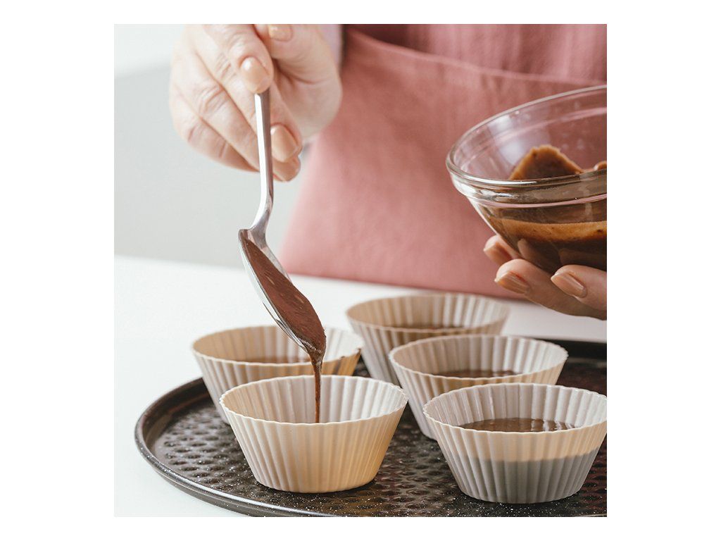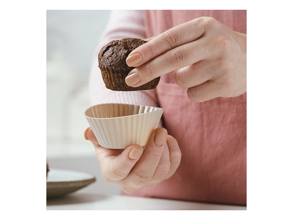 Silikonové barevné košíčky o průměru 6,5 cm. Jsou vyrobeny z prvotřídního žáruvzdorného silikonu, odolné od -40 do +230°C. Košíčky nepřipalují, pokrmy lze snadno vyklopit. Určeno pro opakované pečení ve všech typech trub včetně mikrovlnné, vhodné do ledničky, mrazničky a myčky.