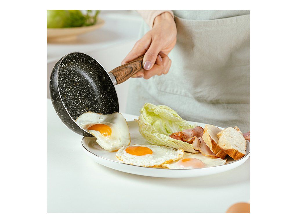 - pánev je vyrobena z litého hliníku a vnější plocha je opatřena granitovou vrstvou.