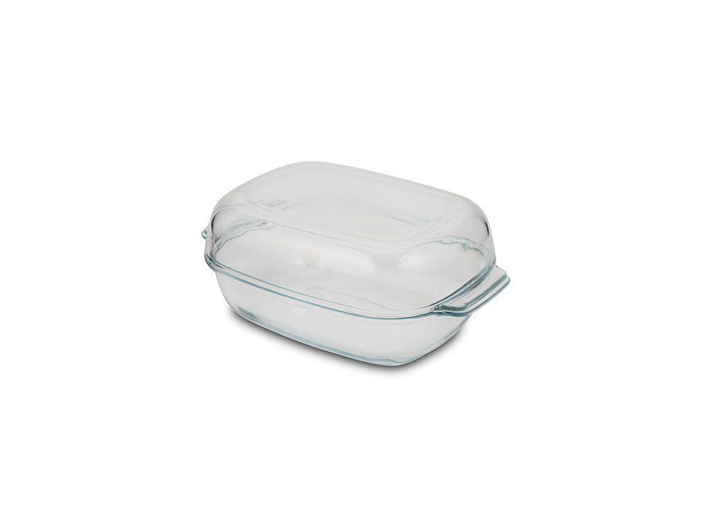 Obdelníková zapékací mísa s víkem je vyrobená z varného skla, které patří v moderní kuchyni mezi žádané materiály. Je velmi odolné mechanicky i teplotně (odolnost +300/-40ºC). Výhodou je dlouhá životnost, hygienická nezávadnost (sklo je hladké a neporézní) a snadná údržba, pekáč lze mýt v myčce nádobí. Disponuje multifunkčním víkem, které lze také používat samostatně jako menší pekáč . Rozměry: 34,5x 23 x14 cm