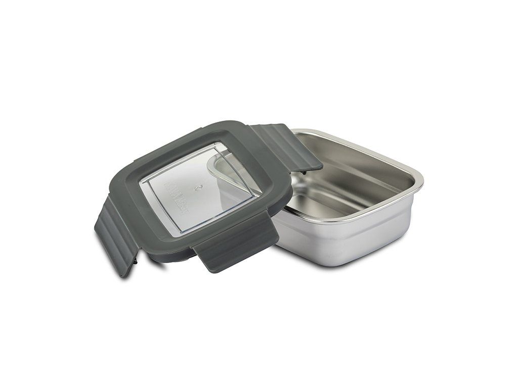 Je vyrobena z vysoce kvalitní nerezové oceli 18/8. Bez BPA, PVC, ftalátů nebo jiných škodlivých látek je zcela bezpečná pro hygienické skladování potravin. Má kapacitu 600 ml a ergonomický tvar pro přenášení jídla nebo občerstvení, kamkoli budete chtít. Víko má 4 uzavírací spony pro dokonalé utěsnění .
