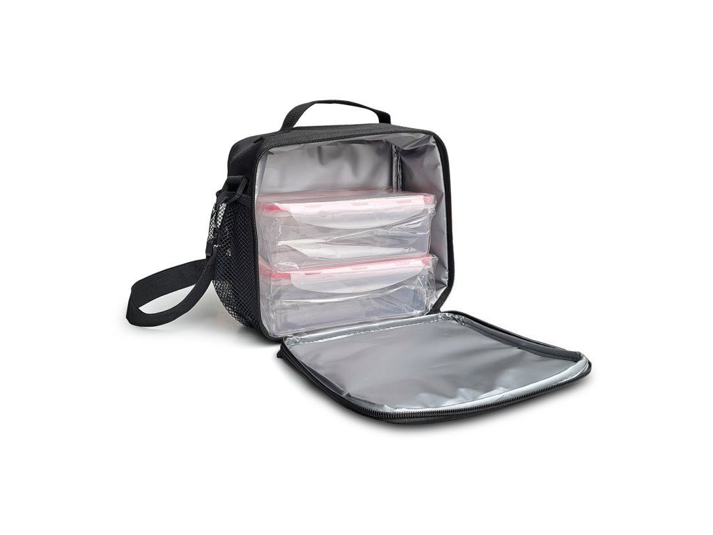 Vnitřní část tašky je tepelně izolovaná a vytváří "efekt ledničky", ta pak lépe chrání jídlo a jeho čerstvost během přepravy. Taška má elegantní, moderní design, rukojeť a nastavitelnou pásku přes rameno. Vnitřní síťovaná kapsa je ideální na ukládání příborů, ubrousků a vnější kapsička je připravena na vaše osobní předměty.