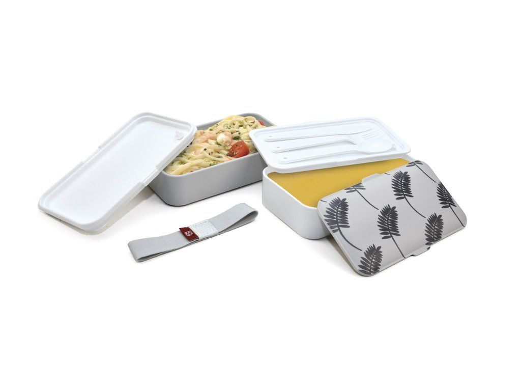 Iris Barcelona Bento Lunchbox má 2 samostatné oddíly, které tvoří kompaktní kus; ten lze podle potřeby spojovat nebo oddělovat. Krabičky můžete do práce, do školy i na výlety nosit pohromadě anebo každou zvlášť. To podle toho, jakou porci jídla si s sebou do práce nesete. Každý z oddílů je 100% vzduchotěsný a má dekompresní ventil pro snadné otevírání a zavírání. Součástí je také sada příborů a gumička, kterou celou sestavu boxů uzavřete. Tento produkt je zcela bez BPA a je vyroben z vysoce kvalitního polypropylenu. V mikrovlnné troubě jej lze použít maximálně 3 minuty k ohřevu jídla. (Nejedná se o produkt na vaření). Možno mýt v myčce. Lze kombinovat s jakýmkoliv sáčkem na jídlo Iris Barcelona. Celková kapacita 1,2L.
