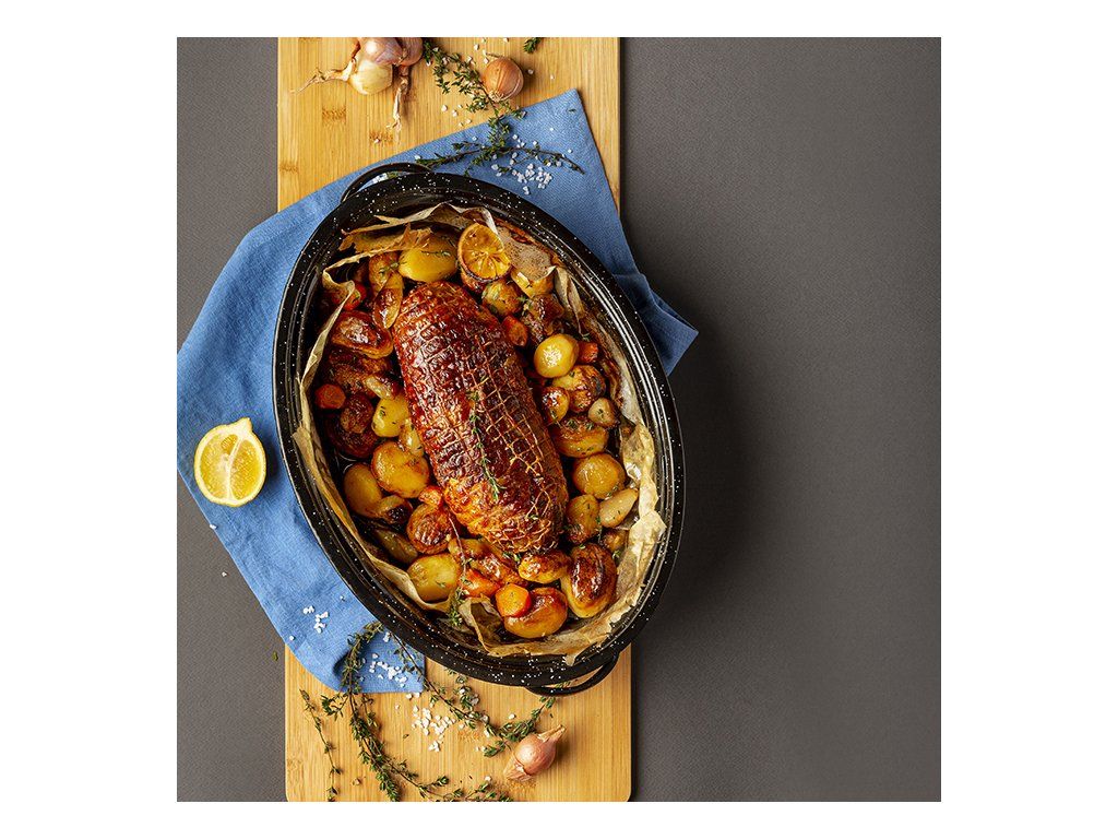 Oválný smaltovaný pekáč o objemu 3 litry je ideální pro každodenní použití v kuchyni. Pekáč je vyroben z uhlíkové oceli a smaltovaného povlaku. Smalt je materiál, který se rychle zahřívá a pomalu ochlazuje, čímž udrží vařené jídlo déle teplé. Zajišťuje rovnoměrné rozložení tepla během pečení. Vykazuje velkou odolnost proti poškrábání a vysokým teplotám, je lehký, snadno se přenáší a čistí. Pekáč má dvě boční rukojeti pro snadné přenášení a je vybaven praktickým víkem s rukojetí. Vhodný do myčky
