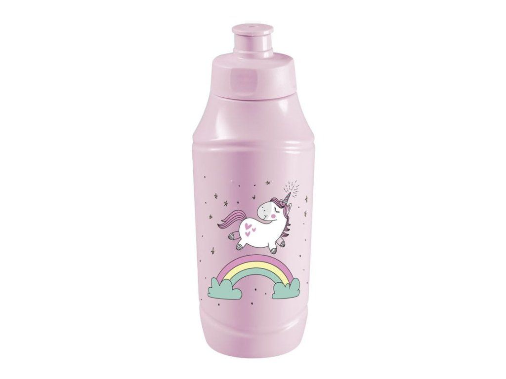 Plastová láhev na vodu s roztomilým potiskem jednorožce. Je vyrobena z kvalitního, zdravotně nezávadného plastu. Ideální na výlety, do školy, na denní použití. Bez ftalátů a BPA. Objem 0,35 l.