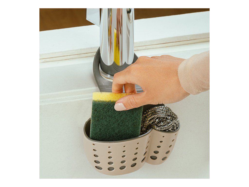 Držák na houbičku je vyroben z odolného plastu a vysoce kvalitní gumy pro lepší uchycení na dřezovou baterii. Otvory uvnitř držáku napomáhají snadnému a rychlému odtoku tekutiny z houbičky a ventilaci , čímž se zamezí vzniku choroboplodných zárodků a pachů.