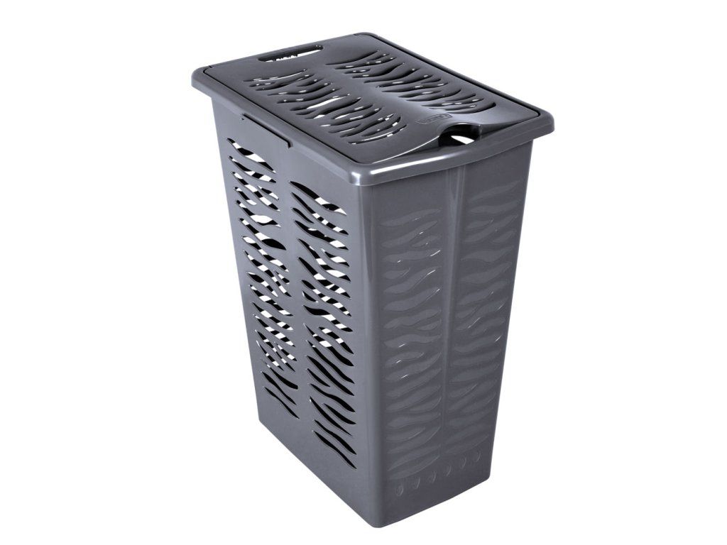 Praktický prádelní koš s rozměry 250 x 375 x 480 mm je vyroben z kvalitního plastu. Má kompaktní, obdélníkový tvar, elegantní design a odnímatelné víko. Je vybaven úchyty pro snadnou manipulaci, estetické otvory po bocích umožňují cirkulaci vzduchu. Barevné provedení- antracit