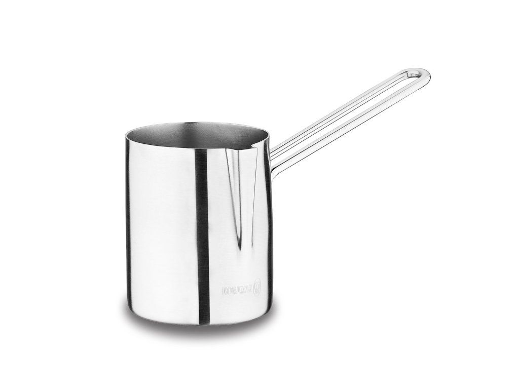 Moderní nerezová džezva je určena pro tradiční přípravu turecké kávy. Je vyrobena z prvotřídní nerezové oceli, leštěný povrch jí dodává elegatní vzhled. Kapacita 3 šálky. Snadnou manipulaci s džezvou zajišťuje praktická ergonomicky tvarovaná rukojeť. Lze ji použít na všechny typy sporáku kromě indukce. Džezva je sice magnetická, ale vzhledem k malému průměru nelze zaručit, že indukční vařič sepne. Z toho důvodu ji pro indukce nedoporučujeme.