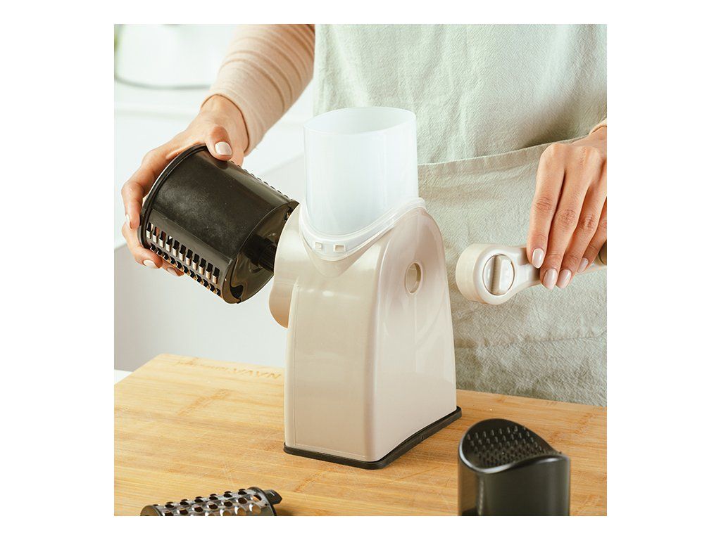 Ideální pro krájení okurek, cuket, brambor, mrkve, arašídů, vlašských ořechů a různých ořechů, sušenek, strouhání sýra a mnoho dalšího, díky čemuž je nepostradatelným pomocníkem v kuchyni.