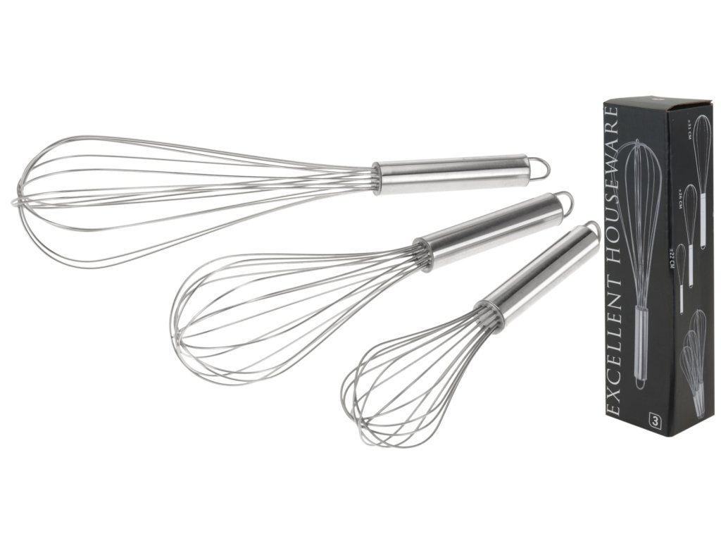 Sada obsahuje metly vyrobené z kvalitní nerezové oceli ve třech různých velikostech s očkem na zavěšení. Délka jednotlivých metliček je 22 cm, 26 cm a 31 cm
