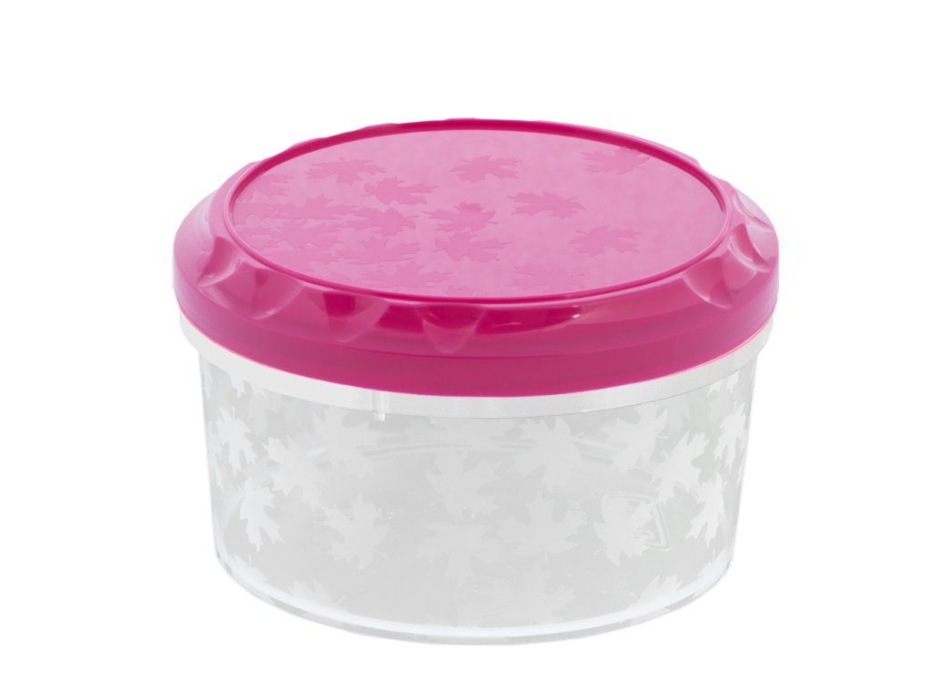 - Design s duší: Průhledné stěny s reliéfními lístky vypadají skvěle na poličce i v lednici. Okamžitě vidíte, co je uvnitř, a přitom dóza působí jako vkusný doplněk.