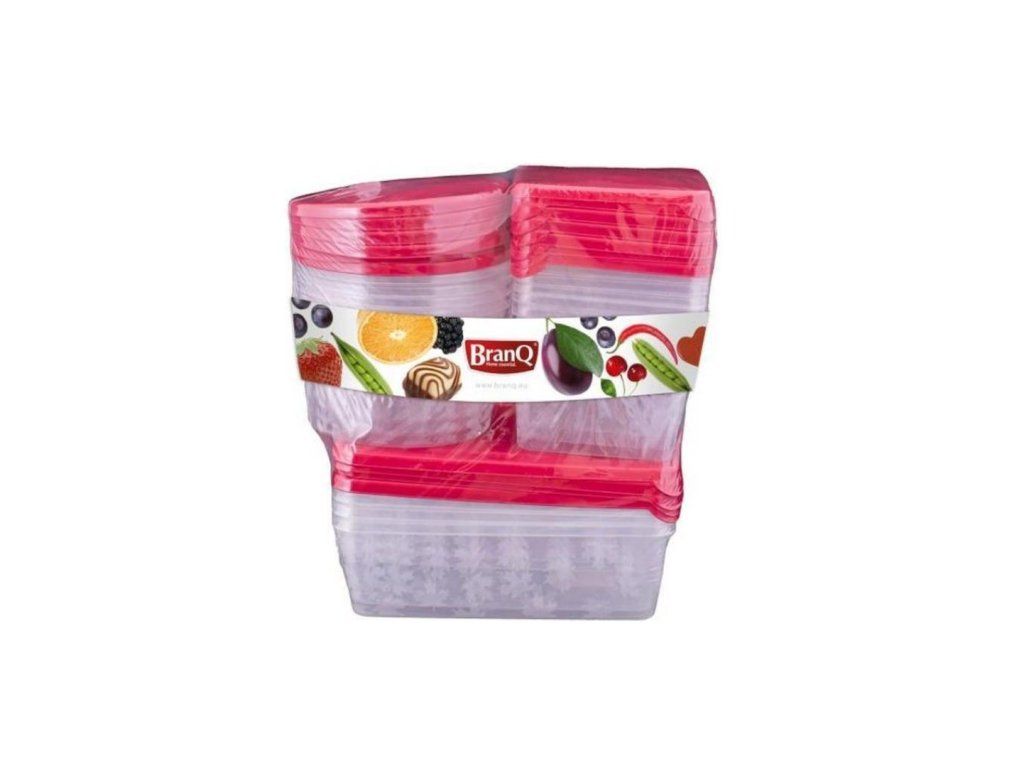 Sada víceúčelových dóz na potraviny s barevným víčkem. Svěží moderní design s motivem lístků. Kombinace dóz - 4x obdelník, 6x kulatá, 7x čtverec. Vhodné do mrazničky, mikrovlnné trouby (bez víčka). (4x0,45l + 3x0,75 l + 2x0,9l + 2x1,35l + 3x0,45l + 3x0,75l )