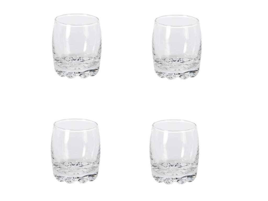 Sada 4 kusů sklenic na destiláty o objemu 70 ml. Sada panáků na oblíbený destilát nesmí chybět v žádné domácnosti. Elegantní tvar skleniček se zdobeným dnem je vhodný pro každou příležitost. Výška sklenice - 6 cm.