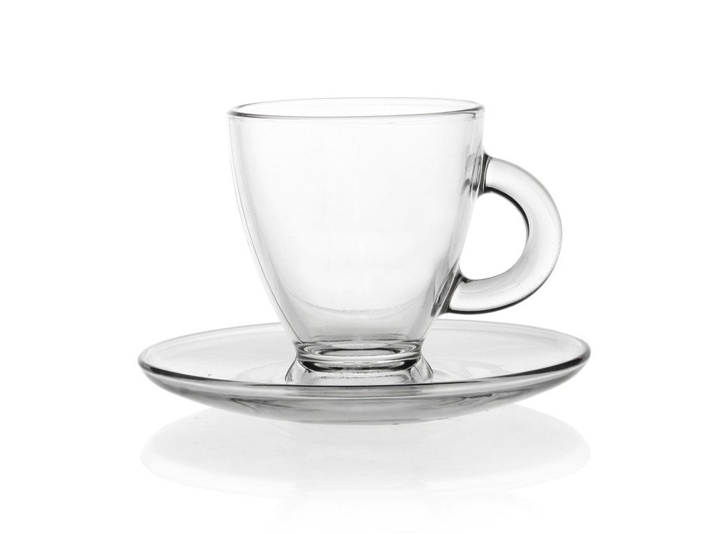 Skleněný šálek na espresso s podšálkem se pyšní atraktivním, jednoduchým designem a díky němu se podávání Vaší oblíbené kávy stane příjemným zážitkem. Výška s podšálkem 8 cm, průměr 6 cm, oválný podšálek má rozměry 12x10 cm.