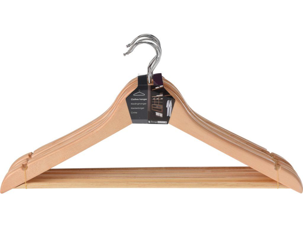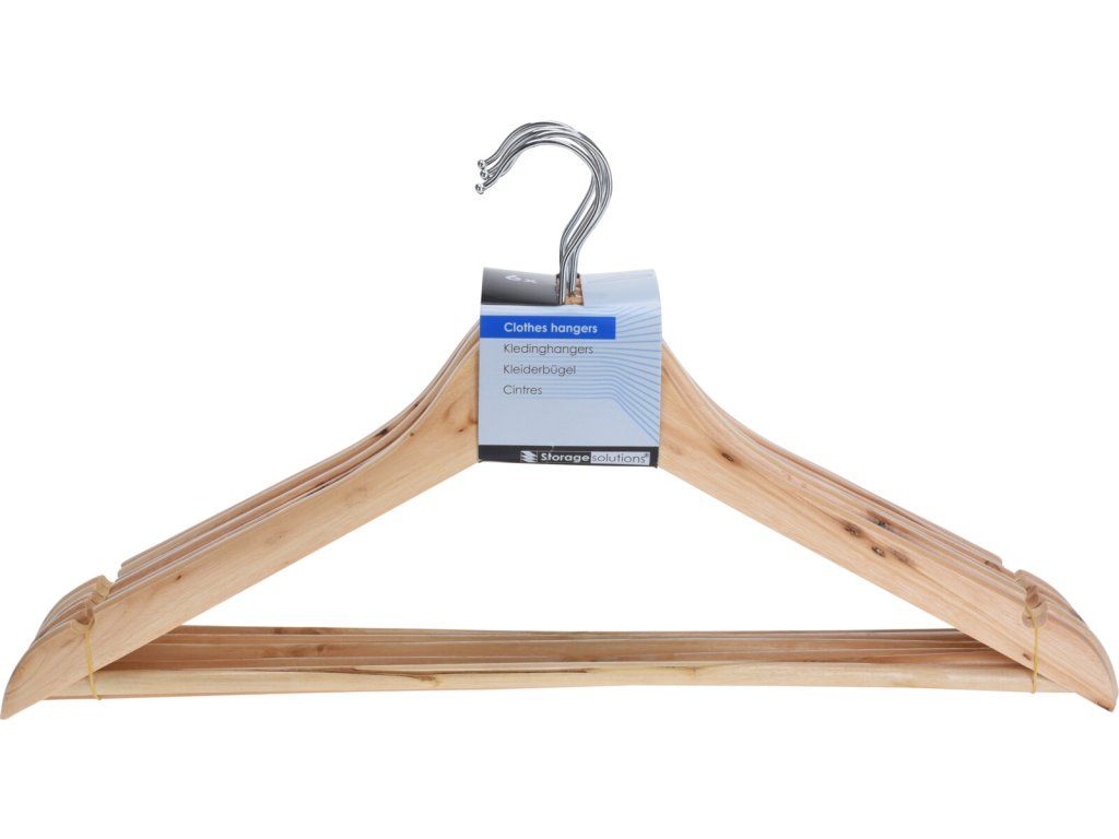 6dílná sada ramínek obsahuje 6ks dřevěných šatních ramínek s kovovými háčky (délka ramínka 44,5cm, tloušťka 1,2cm).
