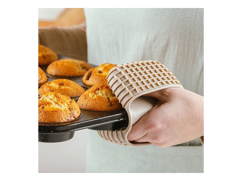 Chňapka zajišťuje stabilní a pohodlný úchop a extrémně snadno se čistí. Se speciálním, reliéfním, protiskluzovým povrchem, vyrobeným z vnější strany z měkkého, pružného silikonu vysoké kvality, odolným vůči vysokým teplotám. S praktickým poutkem na okraji k zavěšení.