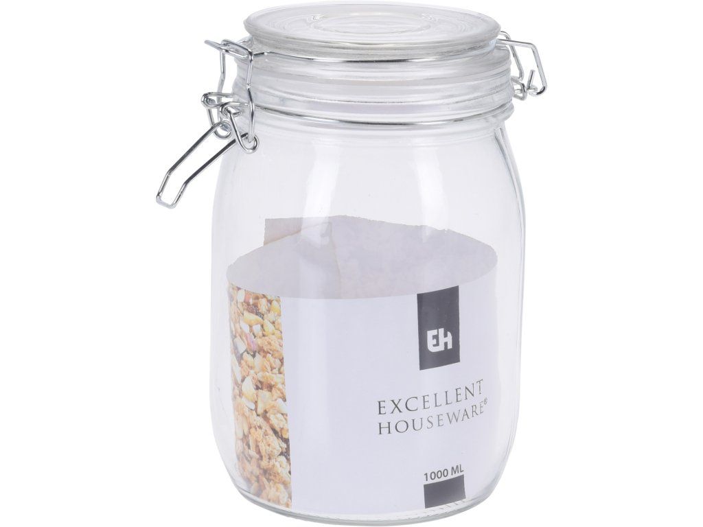 Uzavíratelná sklenice z čirého skla pro zavařování nebo skladování potravin s klipem a gumovým těsněním. Lze použít na skladovaní, zavařování, na paštiky, mastičky nebo krémy. Vzduchotěsné víko pomáhá déle uchovávat chuť a aroma jídla. Výška 17 cm, průměr dna 10 cm.