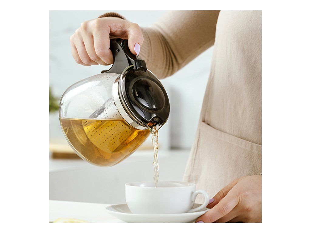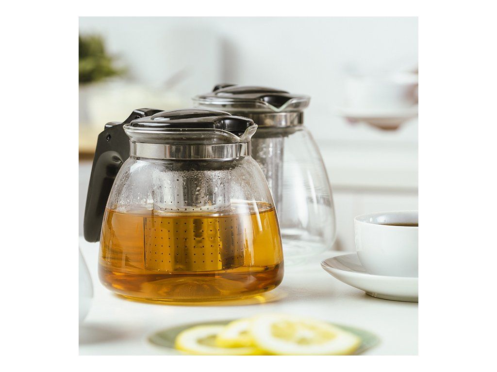 Vyrobeno z tepelně odolného skla, odolává vysokým teplotám , s ergonomickou, nevyhřívanou, plastovou rukojetí a infuzérem z nerezové oceli 18/8.